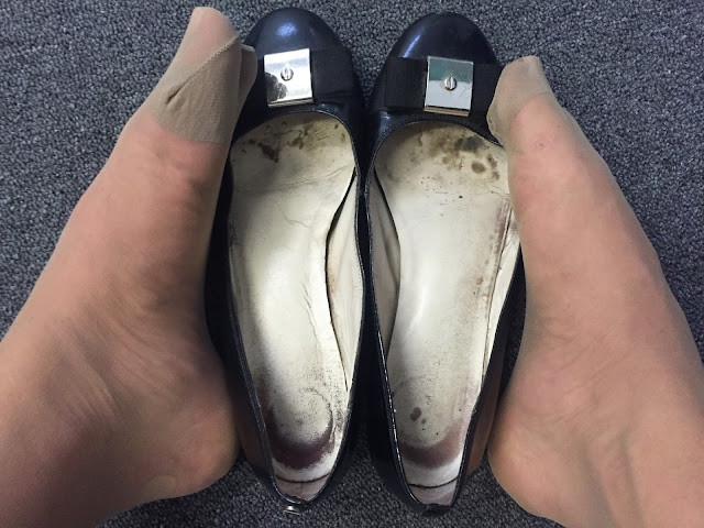 | Oh well worn hot stinky leather work ballet flats... |
